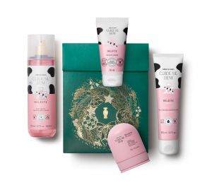 O Kit Presente Natal Cuide-Se Bem Deleite vem com quatro itens com a fragrância queridinha, embalados em uma caixa especial, sendo eles: body splash, loção desodorante corporal, creme de mãos e sabonete líquido.